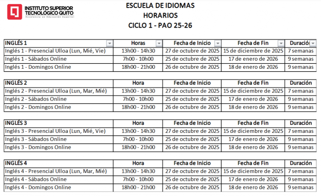 PASOS PARA MATRICULARSE EN LOS CURSOS DE INGLÉS